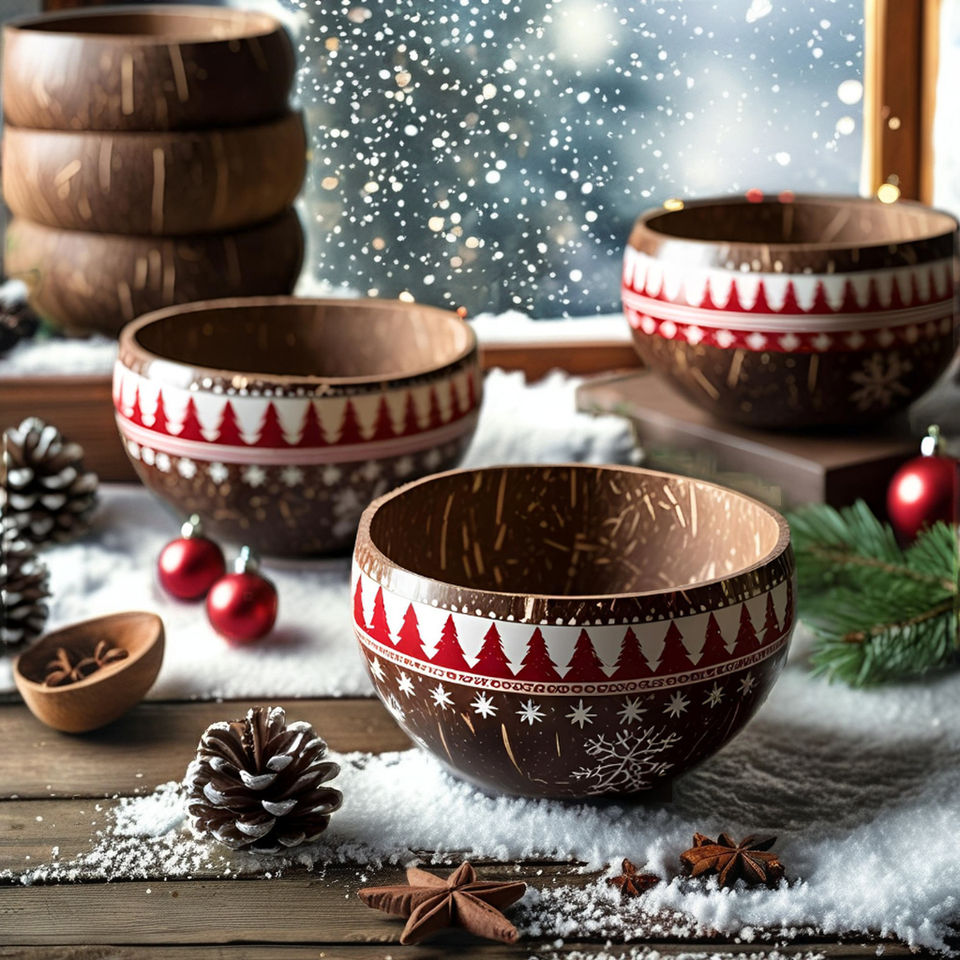 ชามกะลามะพร้าวพิมพ์ลาย3D เป็นมิตรกับสิ่งแวดล้อมน้ำหนักเบาตกแต่งเทศกาลคริสต์มาส