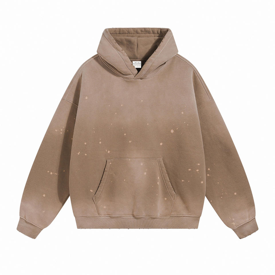 เสื้อฮู้ดดี้ย้อมสีแบบวินเทจ ทรงหลวม ยูนิเซ็กส์ สไตล์ขาดๆ แบบ OEM | เสื้อฮู้ดดี้สตรีทแวร์ขนาดใหญ่พิเศษ ขายส่ง