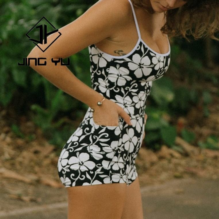 Aloha จั๊มสูทสายเอี๊ยมพิมพ์ลายชิ้นเดียวจั๊มสูทไนลอนและสแปนเด็กซ์รีไซเคิลตามสั่ง