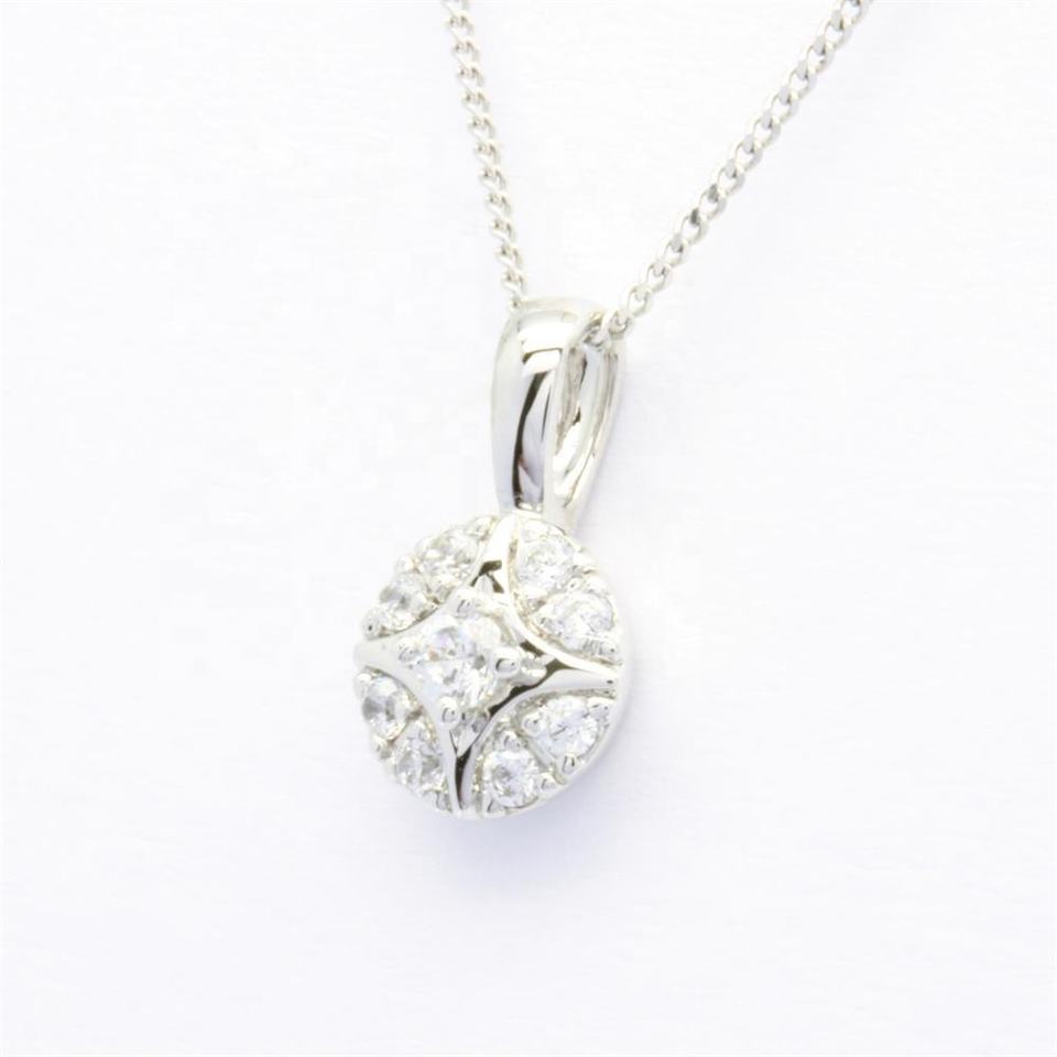 OEM ฉลองครบรอบ ตัวเลือกที่ดีที่สุด ทองชุบคุณภาพสูง 18K ทองคำขาว ประดับเพชรแท้ทรงบริลเลียนต์ 0.10 กะรัต สไตล์คลาสสิกสำหรับผู้หญิง