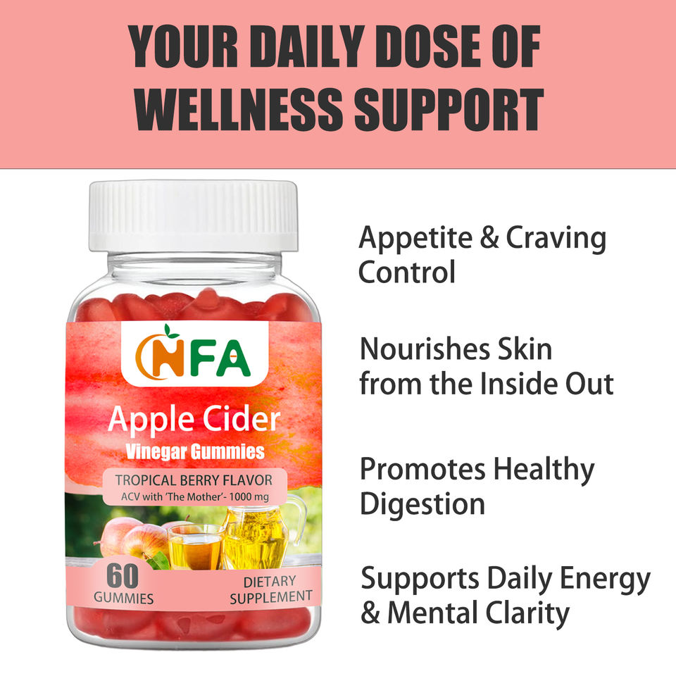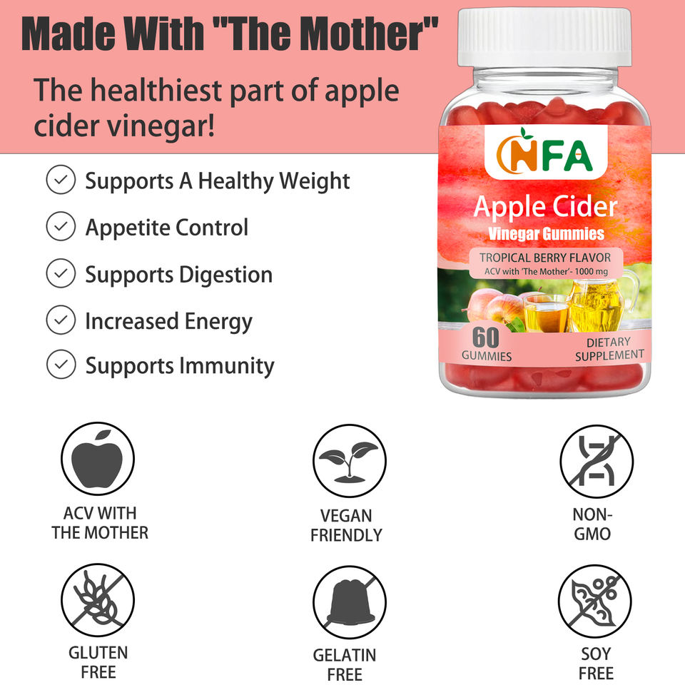 เยลลี่น้ำส้มสายชูหมักแอปเปิ้ล OEM ผสมวิตามินบี โอลีน โฟเลต ช่วยเสริมพลังงานประจำวัน บำรุงสมอง ช่วยย่อยอาหารอย่างดี