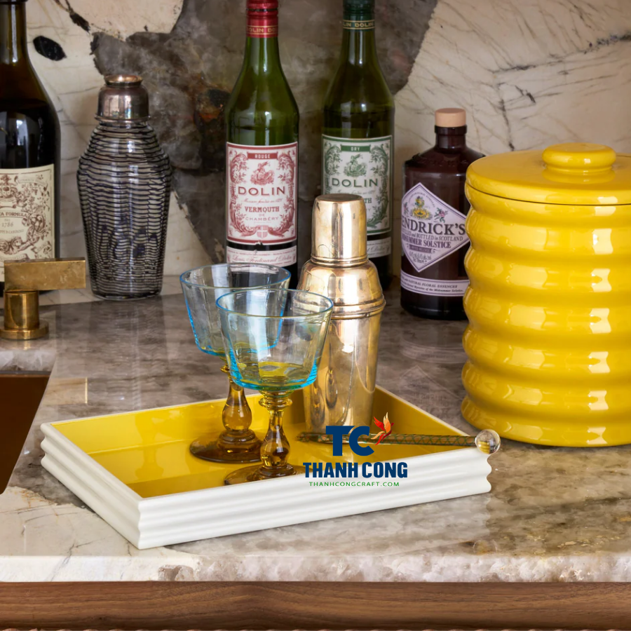 ถาดเคลือบแล็กเกอร์ทำมือมีผิวมันวาวตามประเพณีของช่างฝีมือจากถาดตกแต่งแบบเวียดนาม