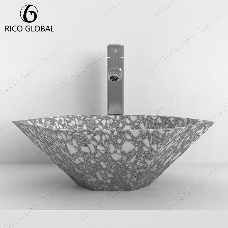 อ่างล้างหน้าหินเทอร์ราซโซ่ธรรมชาติทันสมัยแบบ OEM สำหรับห้องน้ำ อ่างล้างมือหินขัดเงา สำหรับโรงแรม มาเลเซีย รุ่น DS-1008A
