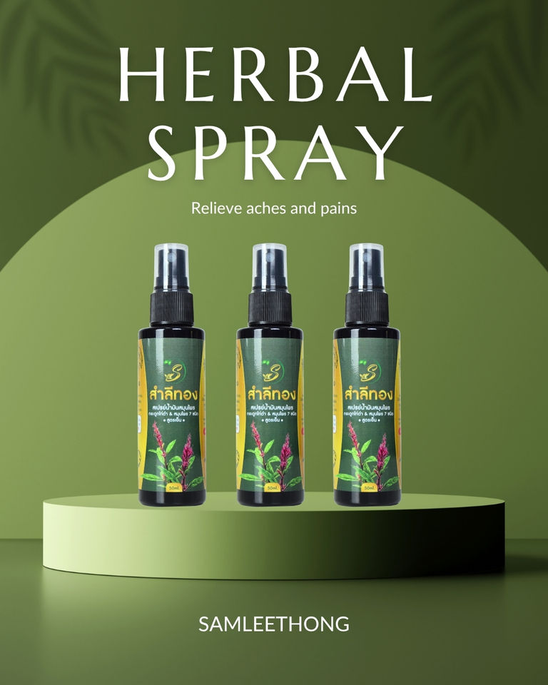 Samleethong สเปรย์บรรเทาอาการปวดสมุนไพรธรรมชาติสูตรไทยสกัดจากเฟิร์นกระดูกไก่สีดำสกัดสมุนไพรหลายชนิด