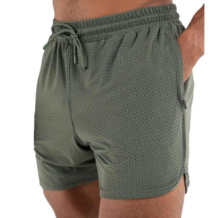 กางเกงขาสั้นตาข่ายสีทึบสำหรับผู้ชายกางเกงขาสั้นตาข่ายแบบแห้งเร็วระบายอากาศได้ดี