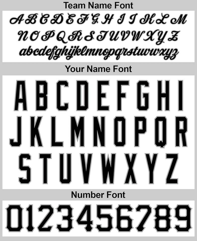 พิมพ์, letter, ไล่ระดับสี, ชื่อผู้เล่น, ชื่อทีม, หมายเลขทีมประเภท รูปแบบ