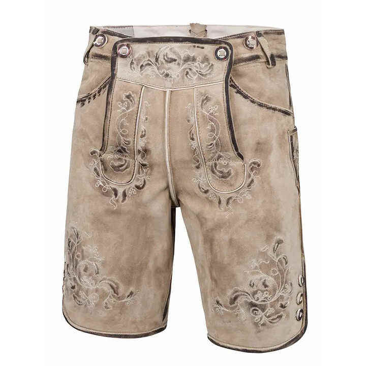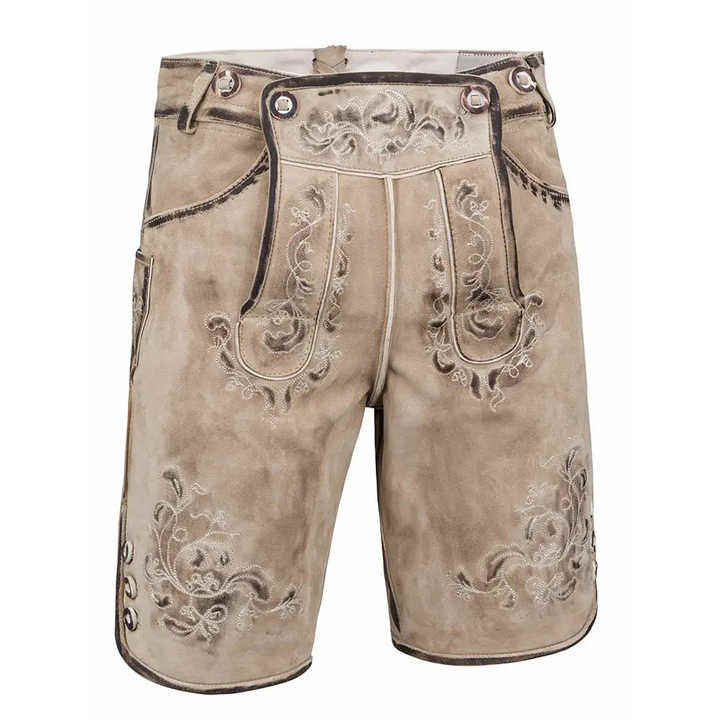 กางเกงขาสั้นสไตล์บาวาเรียสำหรับผู้ชายชุดเยอรมันแบบดั้งเดิม Oktoberfest หนังแว็กซ์สีอ่อน