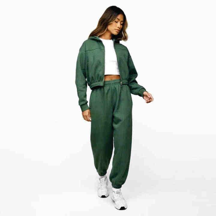 ชุดวอร์มสองชิ้นสำหรับผู้หญิงชุดวิ่งจ๊อกกิ้งแบบรูดซิปพิมพ์โลโก้ตามสั่ง