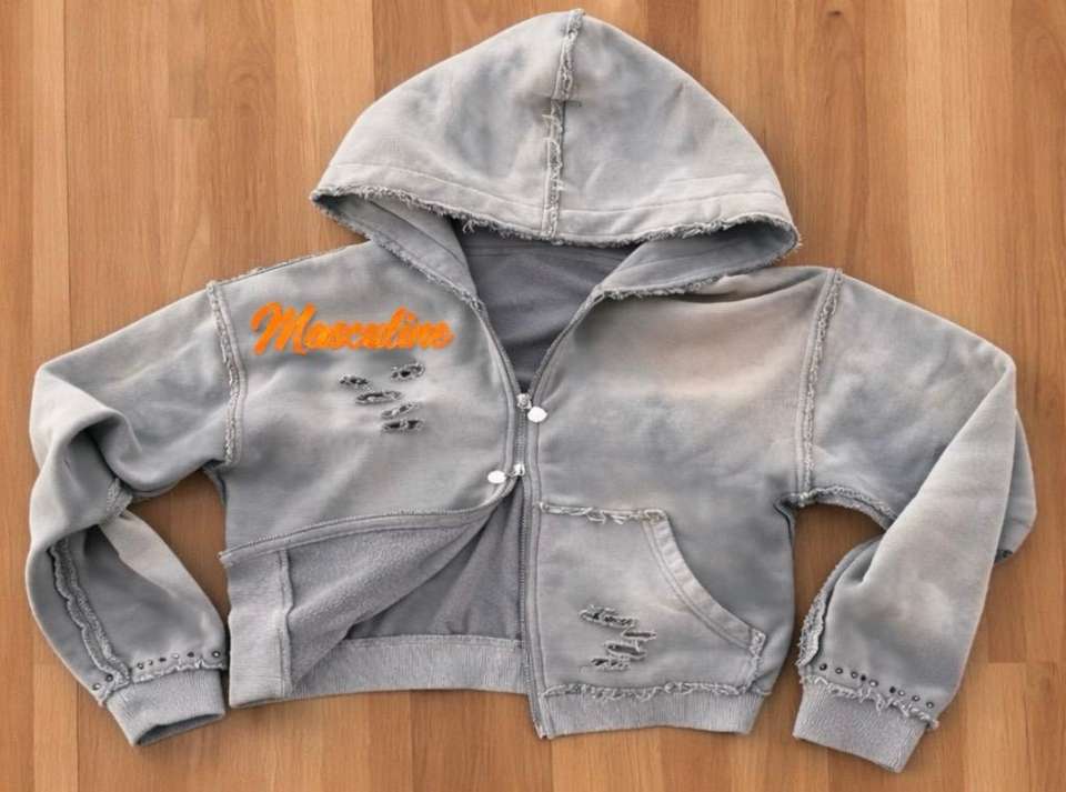 เสื้อฮู้ดดี้แบบยูนิเซ็กซ์ ดีไซน์สตรีทแวร์ ยี่ห้อ OEM รุ่นขายดีที่สุด ผ้าคอตตอน 100% ล้างสีแบบแอซิดวอช แต่งดีเทลขาดๆ ลายจุดทอที่ด้านหน้า เหมาะสำหรับฤดูหนาว