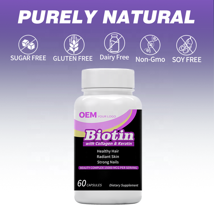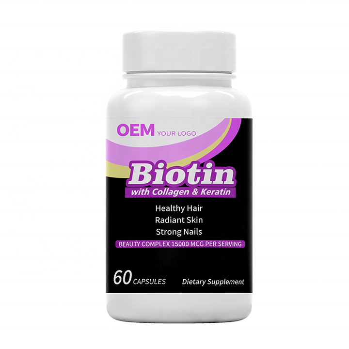 แคปซูลไบโอติน OEM พร้อมคอลลาเจน เคราติน วิตามินซี บำรุงผม ผิว เล็บ อาหารเสริมเพื่อสุขภาพ