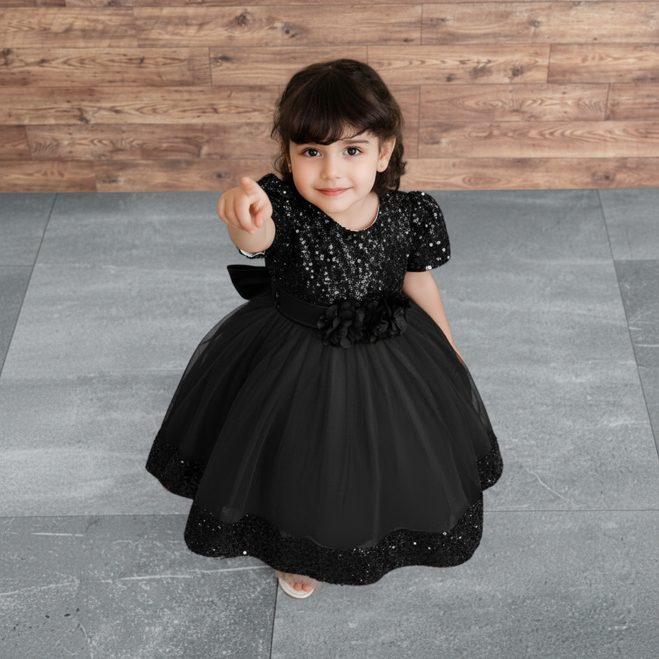 ชุดเดรสเด็กผู้หญิงปักเลื่อมสีดำแบบ OEM หรูหรา ผ้ากำมะหยี่ปักลายโบว์ สำหรับงานแต่งงาน งานวันเกิด งานเลี้ยงอย่างเป็นทางการ ผลิตจากโรงงาน