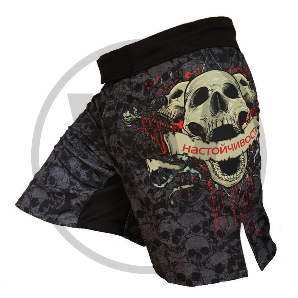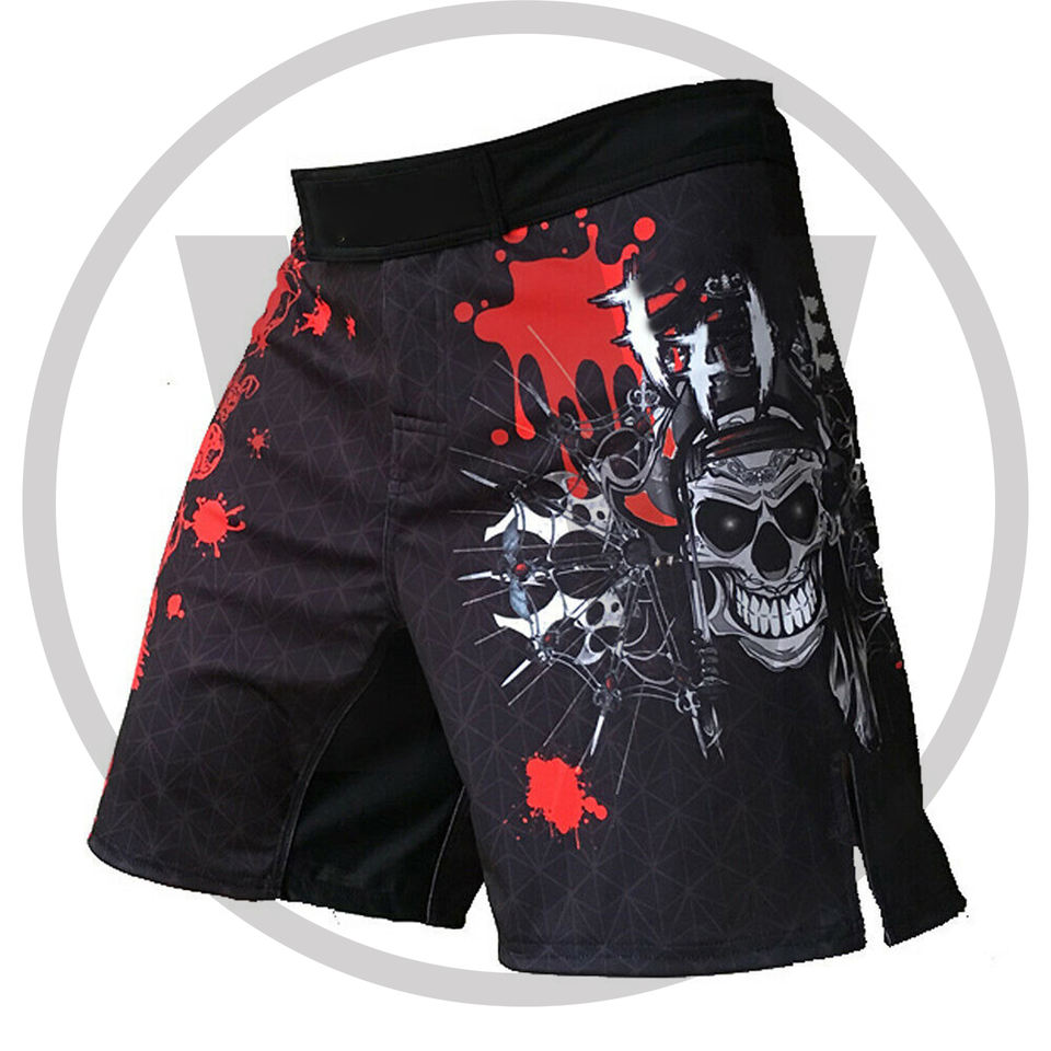 กางเกงขาสั้นซับลิเมชั่นยืดได้สำหรับ MMA และมวย สีน้ำเงิน OEM แบบยูนิเซ็กส์
