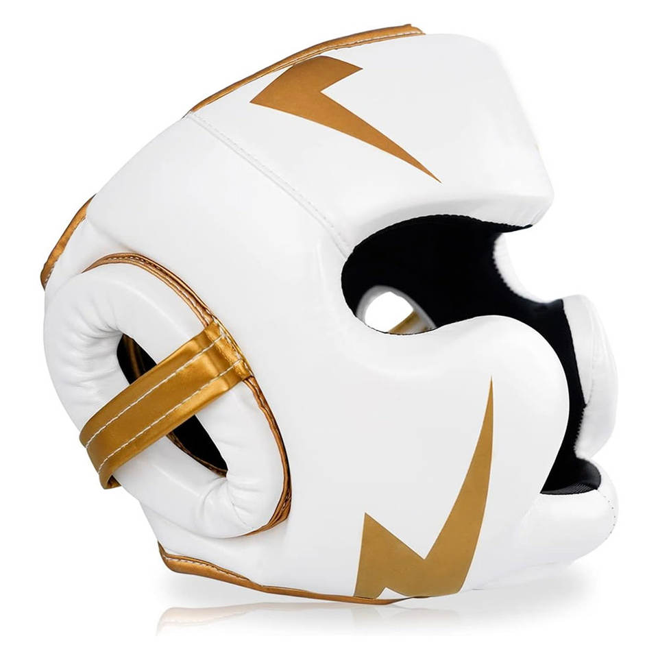 เครื่องป้องกันศีรษะแบบเต็มหน้าทำจากหนังอุปกรณ์ฝึกซ้อมคิกบ็อกซิ่ง MMA แบบมืออาชีพหมวกมวยไทย OEM