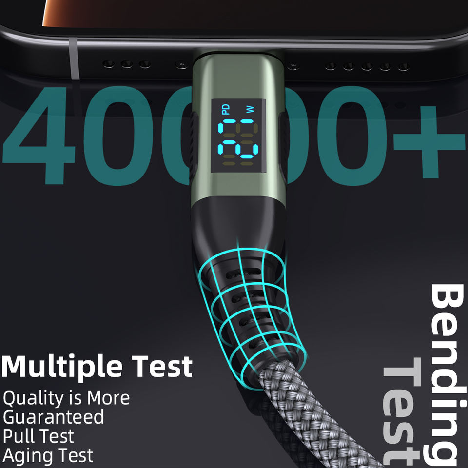 สายยี่ห้อ OEM สายจอแสดงผล LED 27W USB C TO 8 PIN QC 3.0 PD โปรโตคอลทองแดงสายข้อมูลโทรศัพท์มือถือสำหรับ iPhone 14 13