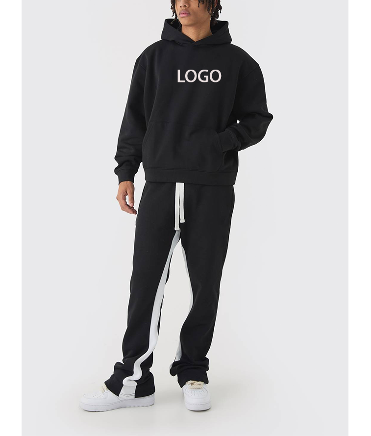 ชุดเซ็ต 2 ชิ้น เสื้อฮู้ดขนฟูและกางเกงจ็อกกิ้งผ้าเนื้อนุ่มพร้อมเชือกผูกเอว สำหรับผู้ชาย ลายปักโลโก้แบรนด์ OEM เหมาะสำหรับฤดูหนาว