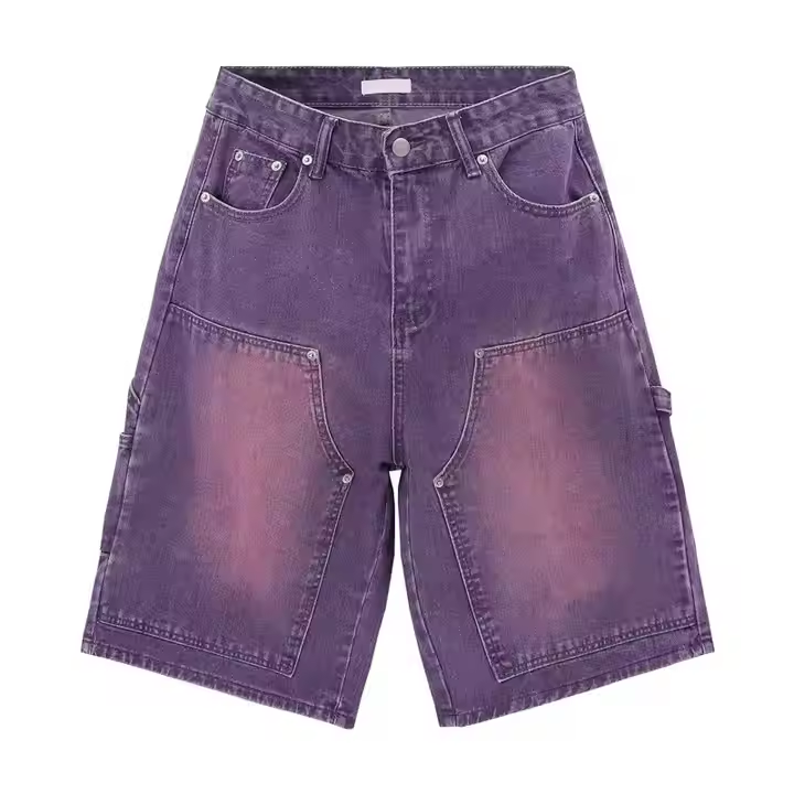 กางเกงยีนส์ขาสั้นผู้ชายสไตล์วินเทจ Y2K แบบ OEM ล้างสี ทรงหลวม สไตล์ลำลอง พร้อมบริการปักลายและสกรีนตามสั่ง