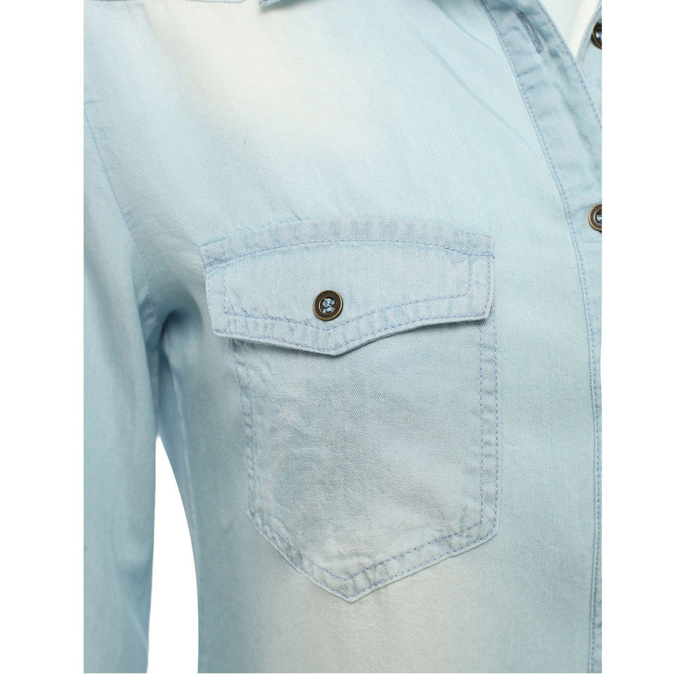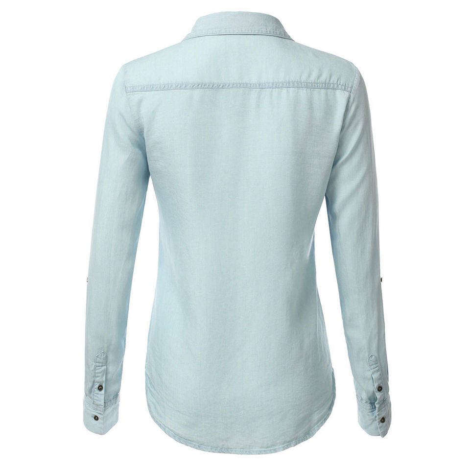เสื้อเชิ้ตเดนิม OEM แขนสั้นลำลอง คุณภาพสูง ระบายอากาศได้ดี ผลิตจากผ้าฝ้ายใยไผ่ คอทรงโอ สำหรับฤดูใบไม้ผลิและฤดูร้อน ทรงเข้ารูปสำหรับผู้หญิง