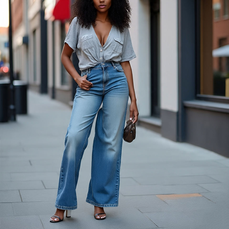 OEM กางเกงยีนส์ขายาวมีกระดุมสำหรับผู้หญิง, กางเกงยีนส์ทรงโอเวอร์ไซส์ผ้ายีนส์กลางแจ้ง