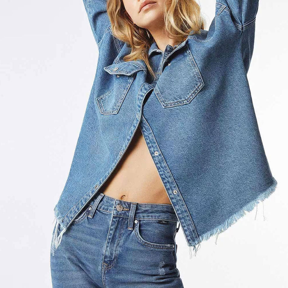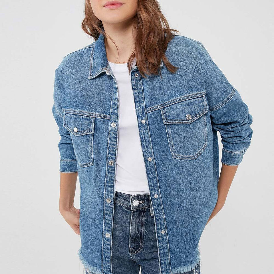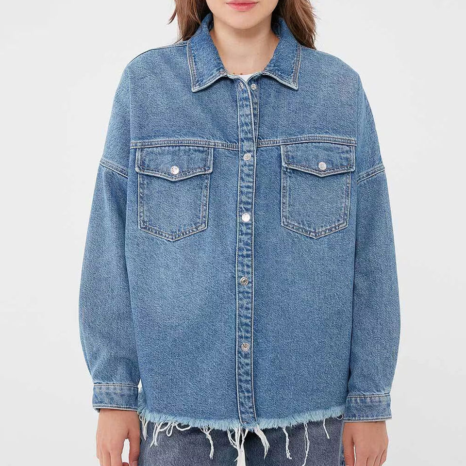 เสื้อยีนส์กระดุมสำหรับผู้หญิงเสื้อลำลองแขนยาวระบายอากาศได้ดีเสื้อยีนส์สำหรับฤดูหนาวใส่ได้พอดีไม่ยับ