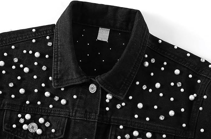เสื้อแจ็กเก็ตยีนส์ของผู้หญิง OEM สั่งทำได้พอดีตัวโอเวอร์ไซส์ใส่สบายดีไซน์หรูหราของตัวดักฝันทันสมัยสีดำสีสันสดใส
