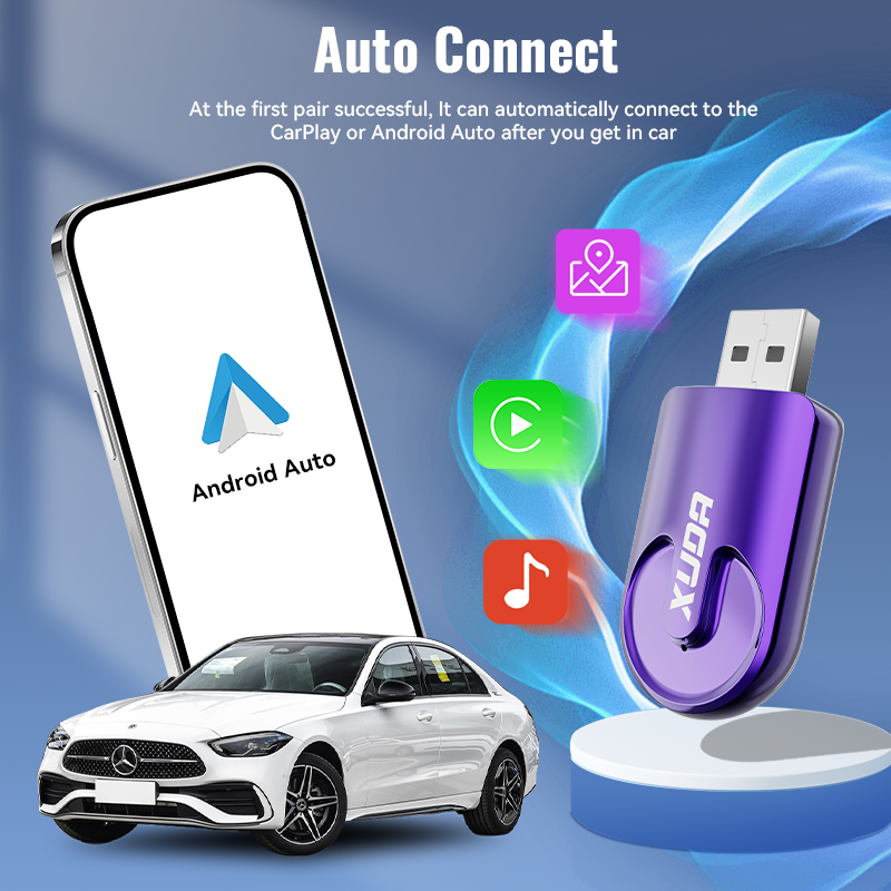 CarPlay วิทยุติดรถยนต์แบบ2 in 1เชื่อมต่ออัตโนมัติใช้ได้กับ CarPlay แบบไร้สายสีม่วง