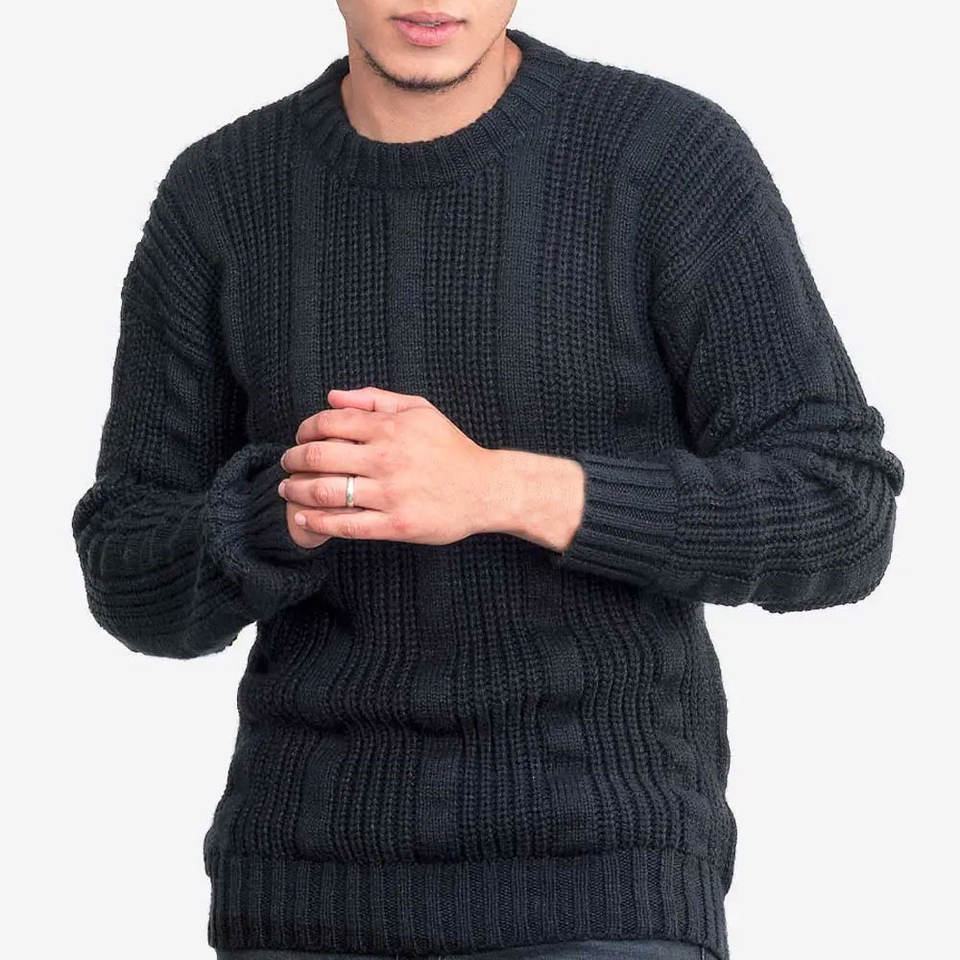 สเวตเตอร์ลำลองผู้ชาย OEM เสื้อถักให้ความอบอุ่นระบายอากาศได้ดีดีไซน์โอเวอร์ไซส์สำหรับฤดูหนาว