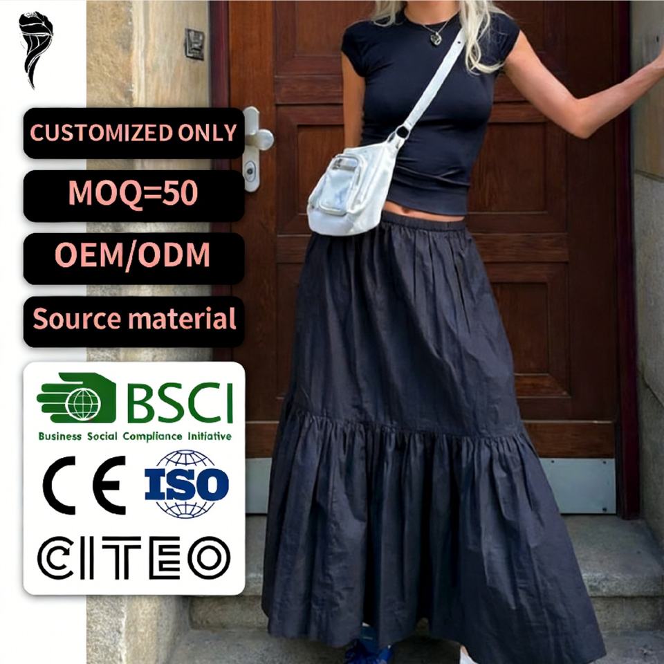 กระโปรงพลีททรงวินเทจ OEM สไตล์ลำลองอเนกประสงค์ เอวสูง สีพื้น ทรงหางปลา ยาวพลิ้ว