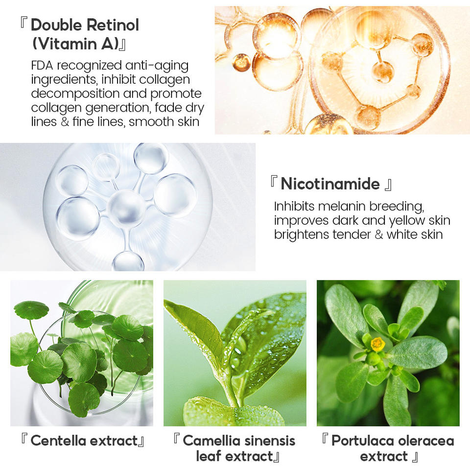 ไนอาซินาไมด์, วิตามินอี, เรตินอล, ซีมบิเดียม, คาเมลส่วนผสมหลัก