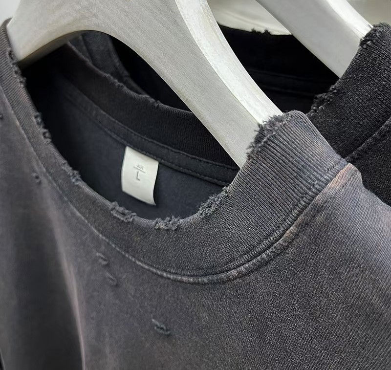 เสื้อยืดผู้ชายสไตล์ดิสเทรส ราคาถูกจากโรงงาน คุณภาพเยี่ยม ระบายอากาศได้ดี รับสกรีนโลโก้/สีตามสั่ง เสื้อยืดดิสเทรสสุดฮิต น้ำหนักเบา