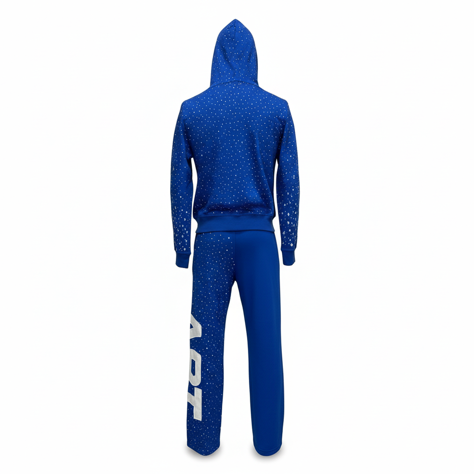 ผู้ผลิตเสื้อผ้า OEM รับผลิตชุดวอร์มแบบซิปสำหรับผู้ชาย ประดับด้วยคริสตัลเต็มตัว พร้อมปักโลโก้ตามแบบที่ต้องการ มีหลายสีให้เลือก