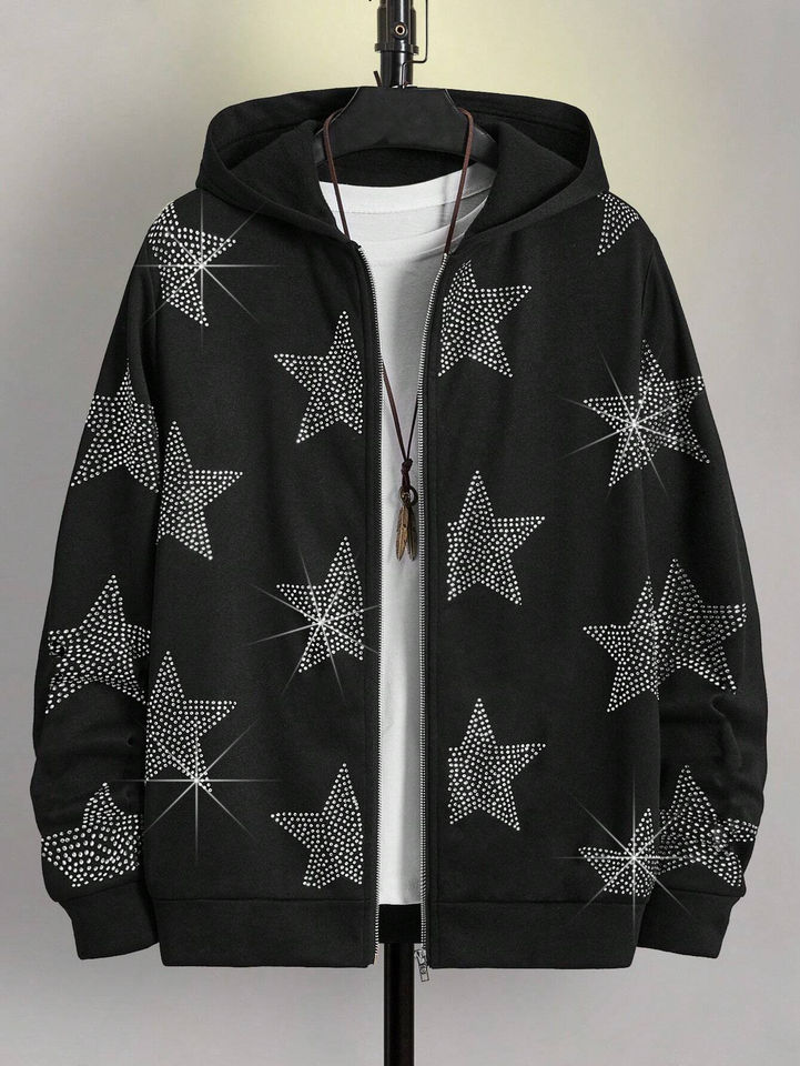 เสื้อฮู้ดประดับพลอยเทียมสำหรับผู้ชาย