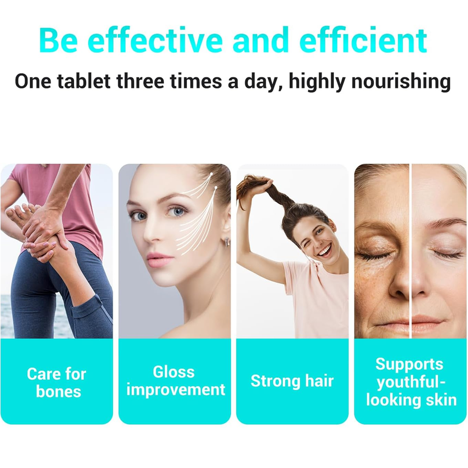 เจริญเติบโตของเส้นผม, การสนับสนุนภูมิคุ้มกัน, ผิวกระจ่างใส, ผิวชุ่มชื้น, การรักษาริ้วรอย, การเจริญเติบโตของเล็บ, รองรับกระดูกและข้อต่อ, การจัดการการเผาผลาญ