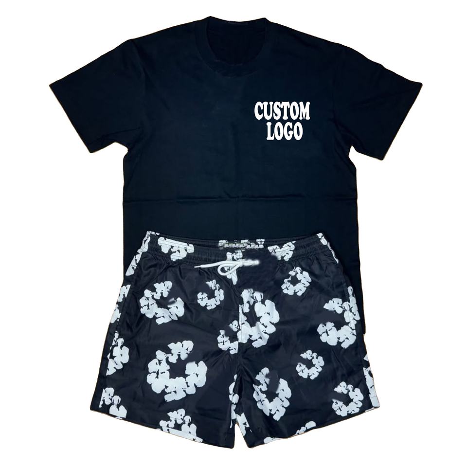OEM ชุดเสื้อยืดและกางเกงขาสั้นสำหรับผู้ชายสำหรับฤดูร้อนเสื้อผ้าสองชิ้นสำหรับใส่อยู่บ้านสีมีให้เลือกไซส์ใหญ่พิเศษ