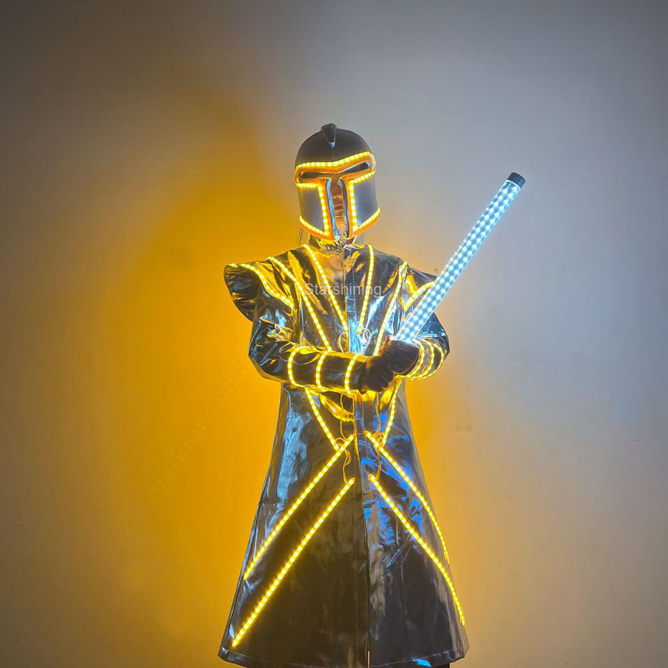 ชุดเต้นรำคอสเพลย์สำหรับผู้ชายชุดเต้นรำหุ่นยนต์ LED เสื้อผ้านักเต้นสำหรับไนท์คลับปาร์ตี้