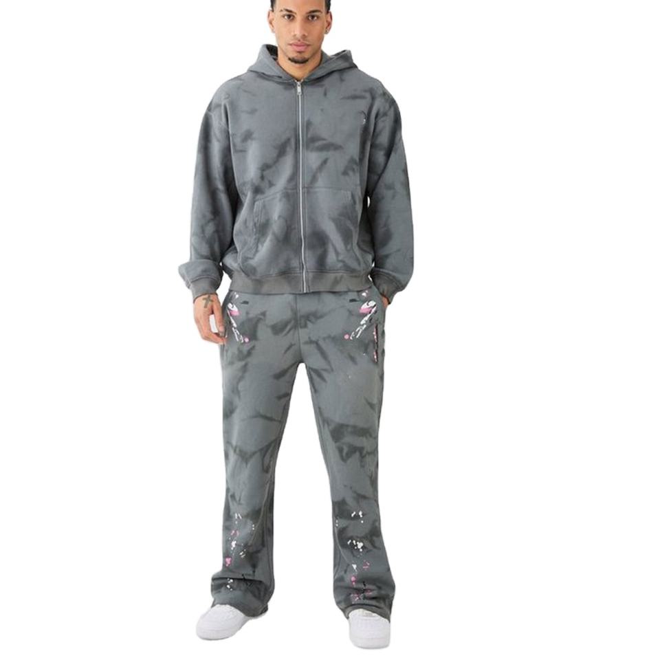 ชุดวอร์มมีซิปสำหรับผู้ชายชุดวอร์มพิมพ์ลายซับลิเมชันชุดวอร์มผ้าฝ้ายโอเวอร์ไซส์ชุดวิ่งสองชิ้นของผู้ชายมีสไตล์