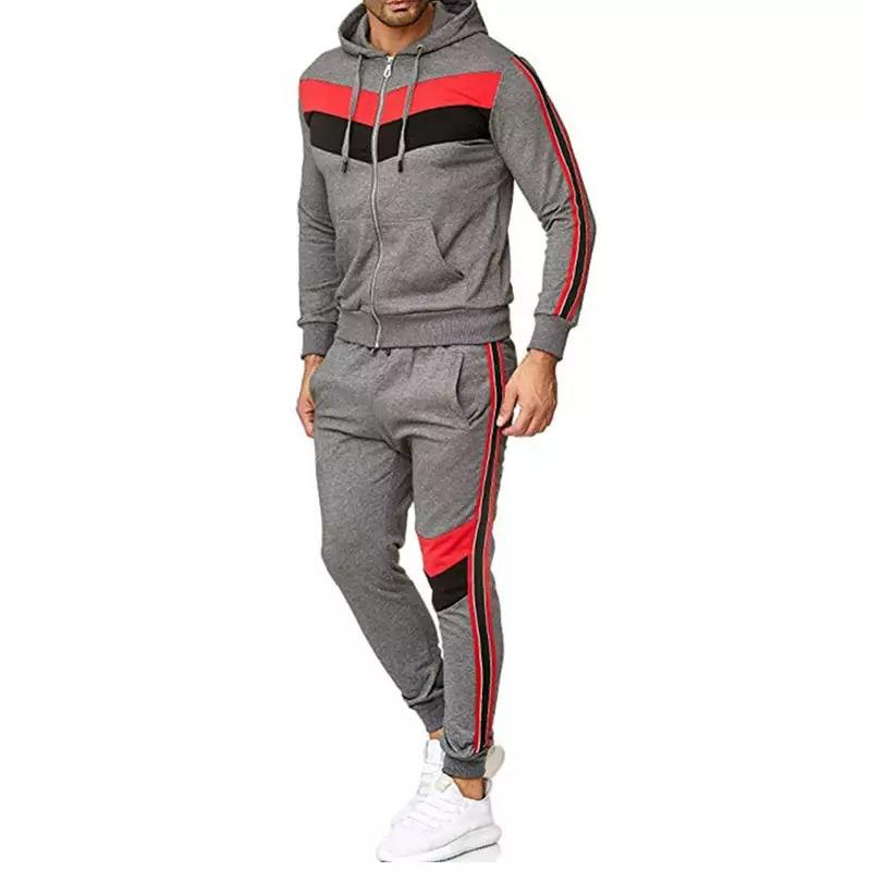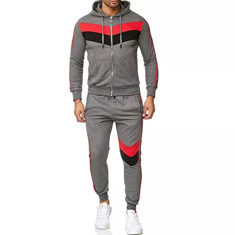 ชุดวอร์มผ้าฝ้ายสำหรับผู้ชายชุดวิ่งสองชิ้นของผู้ชายชุดวอร์มผ้าต่อผ้ามีฮู้ด