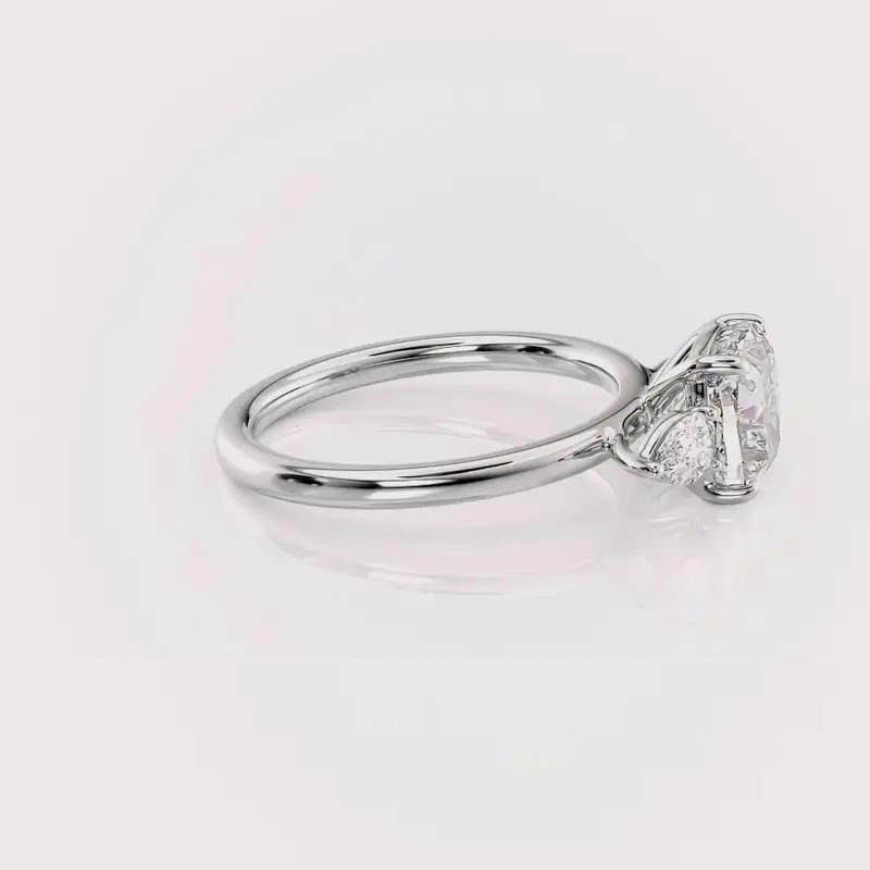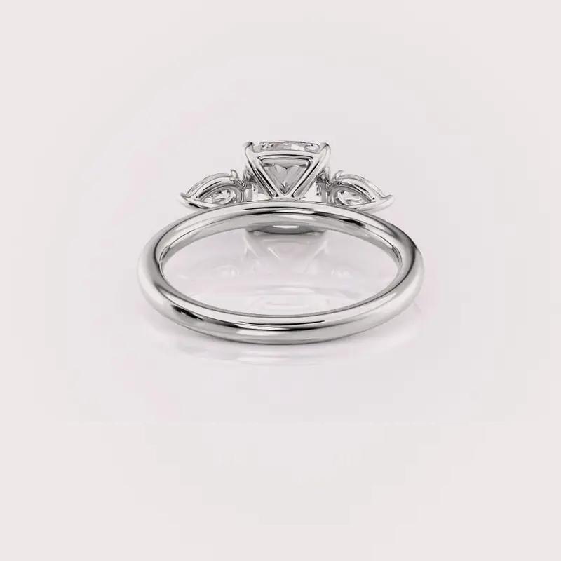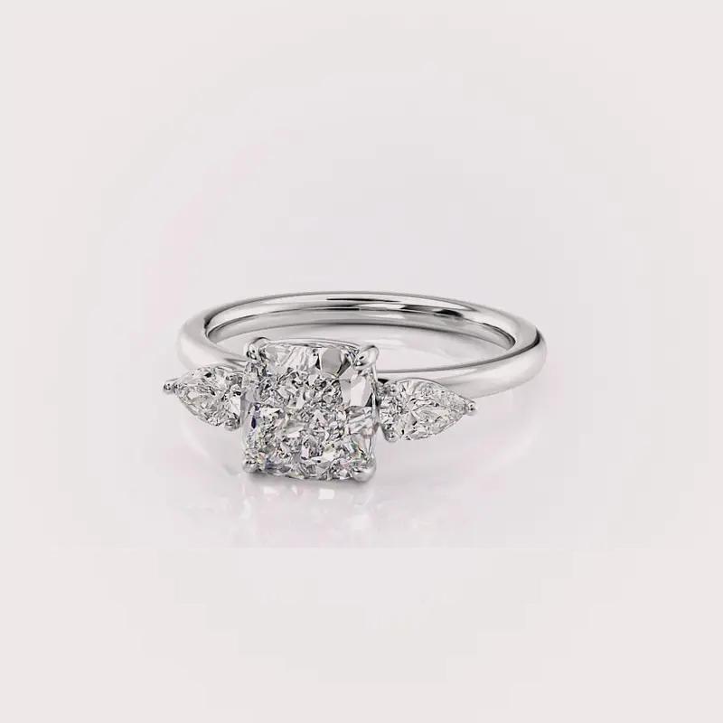 แหวนหมั้นเพชรทรงคุชชั่น 3 เม็ด สไตล์วินเทจ OEM ได้รับการรับรองจาก IGI เพชรเพาะเลี้ยง ตัวเรือนเงินแท้ 925 ชุบโรเดียม