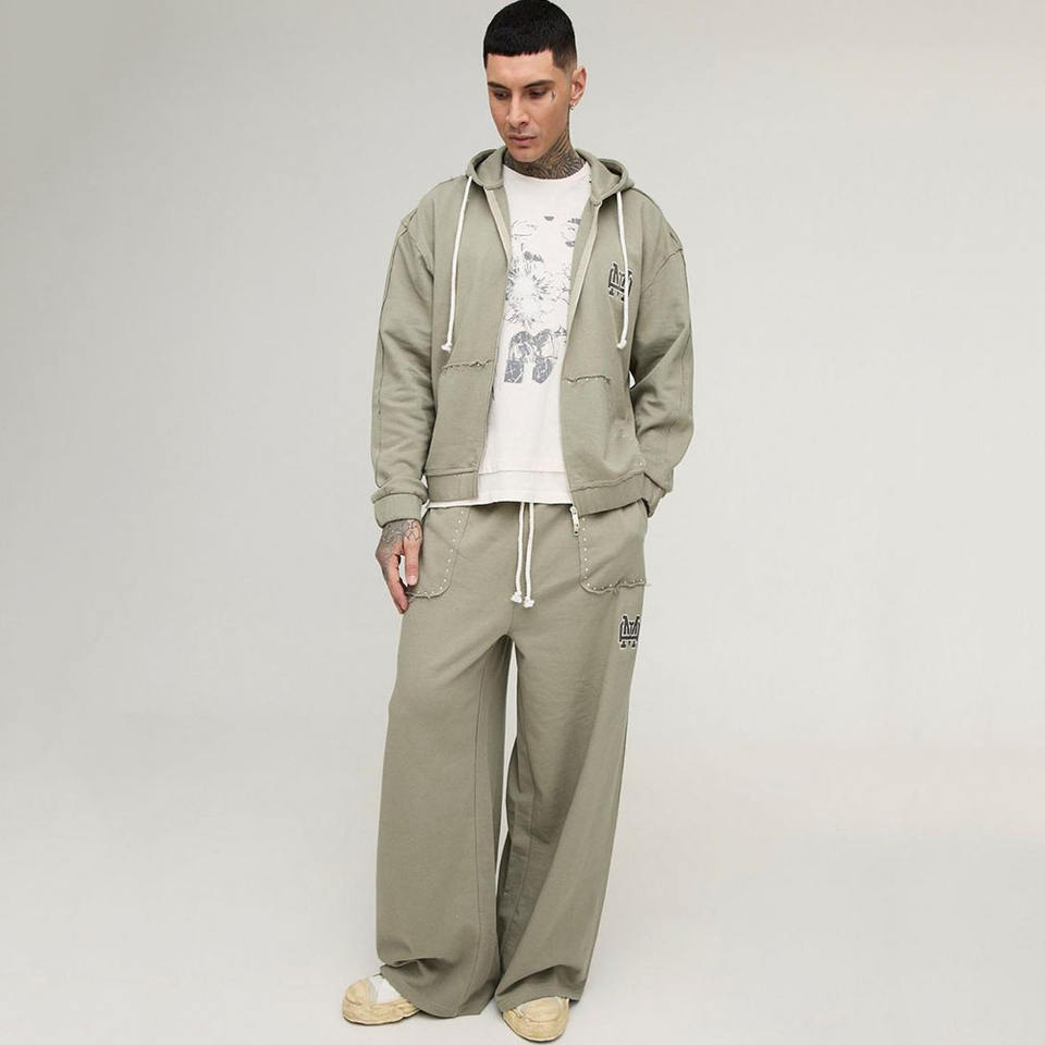 ชุดวอร์มกางเกงมีฮู้ดสำหรับผู้ชายชุดวิ่งกางเกงผ้าฝ้าย100% โอเวอร์ไซส์ชุดวอร์มกางเกงคาร์โก้ชุดวอร์มมีซิปมีฮู้ด