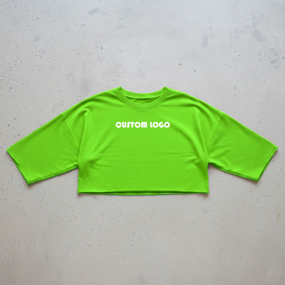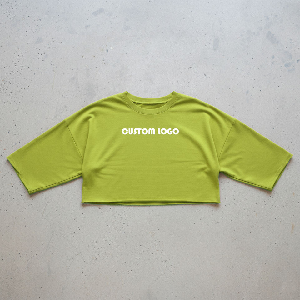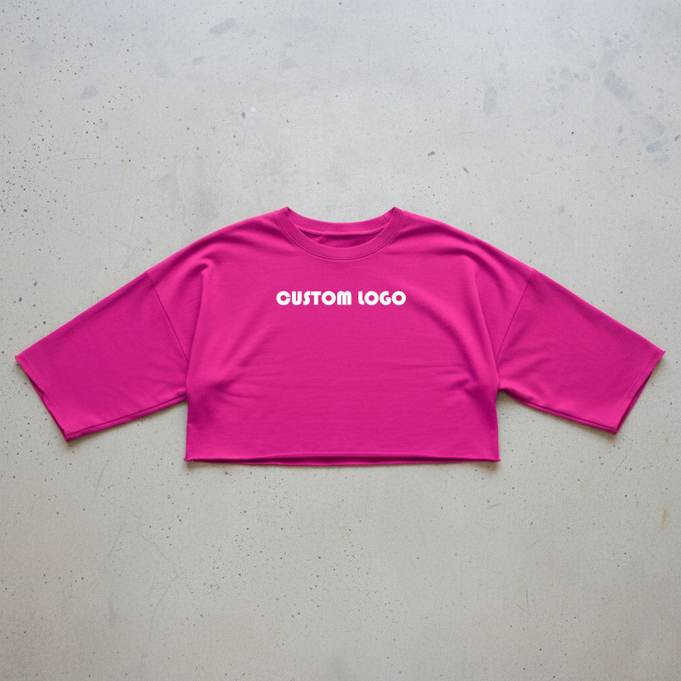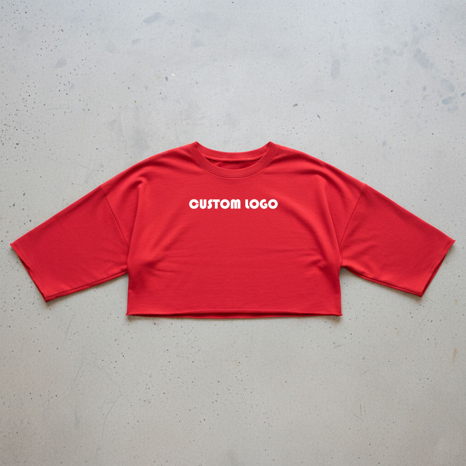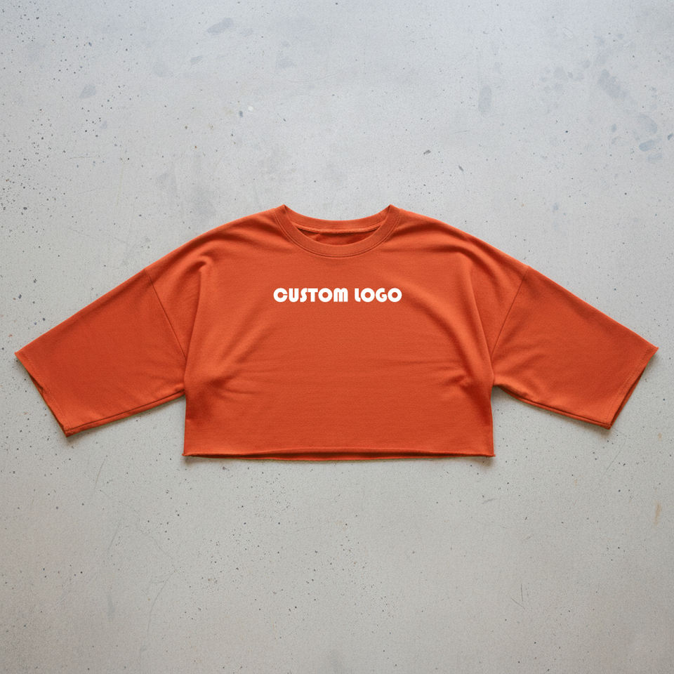 เสื้อครอปท็อปคอกลมแขนสั้นผ้าฝ้าย 100% แบบ OEM สั่งทำได้ ทรงหลวมสไตล์ Y2K สำหรับสาวๆ รุ่นใหม่ เสื้อยืดโอเวอร์ไซส์ทรงบ็อกซี่