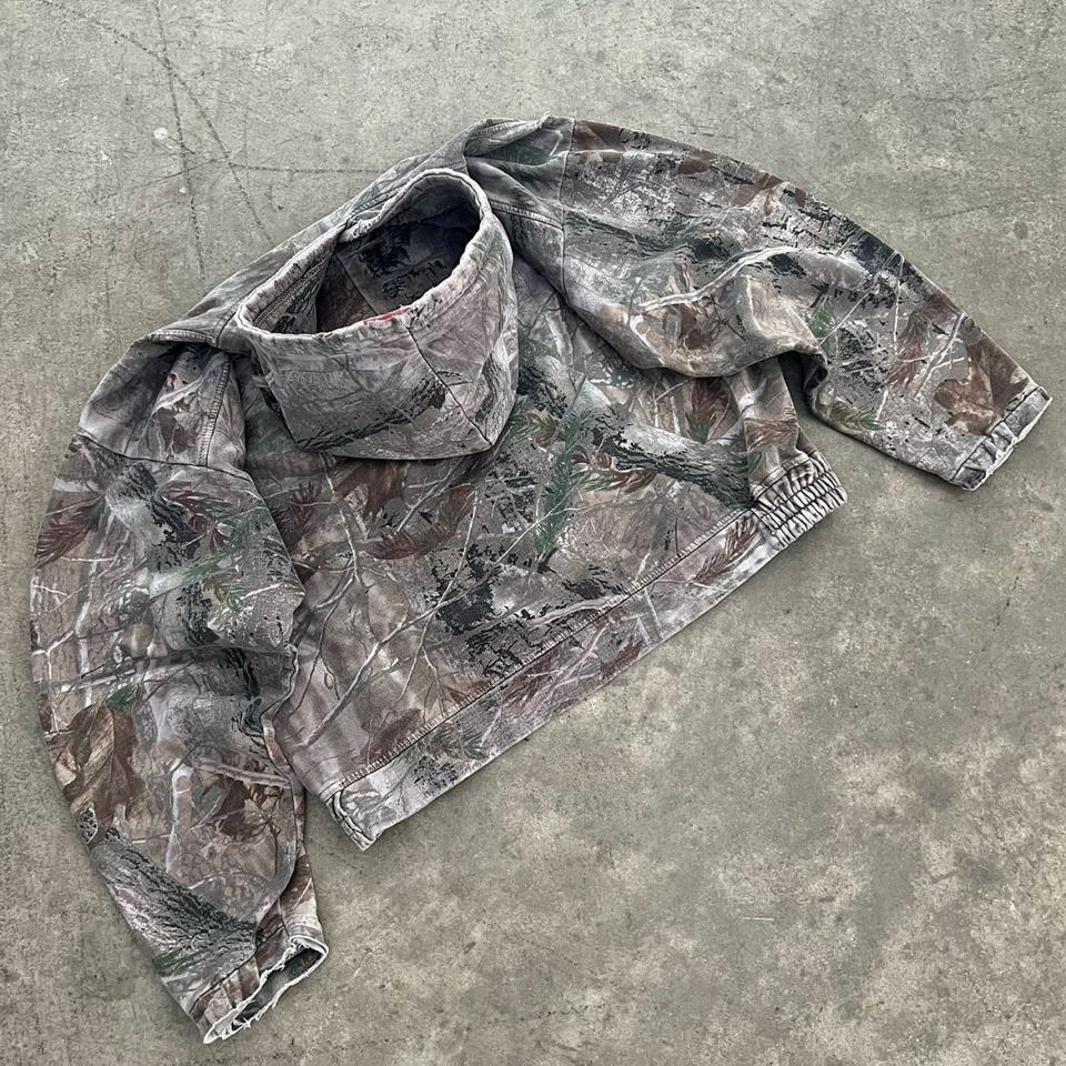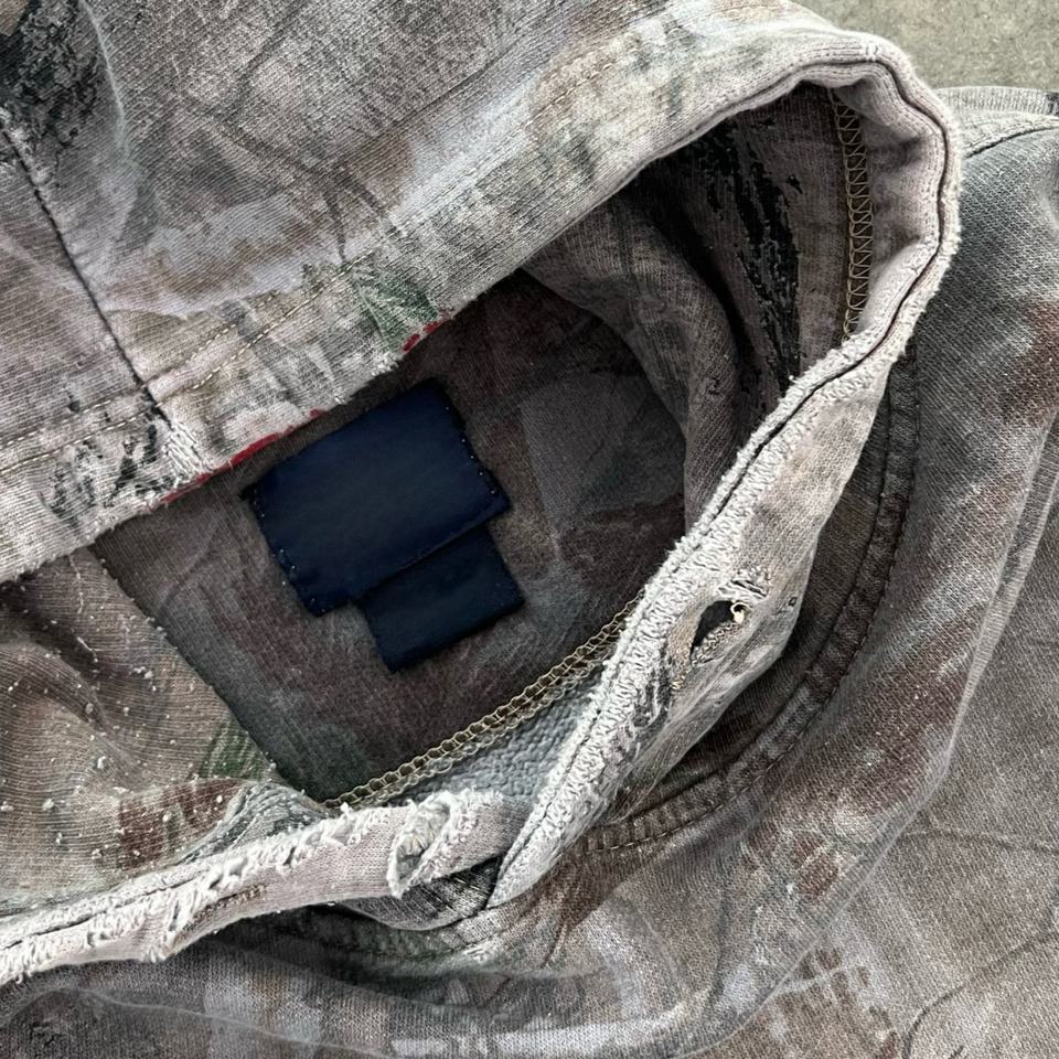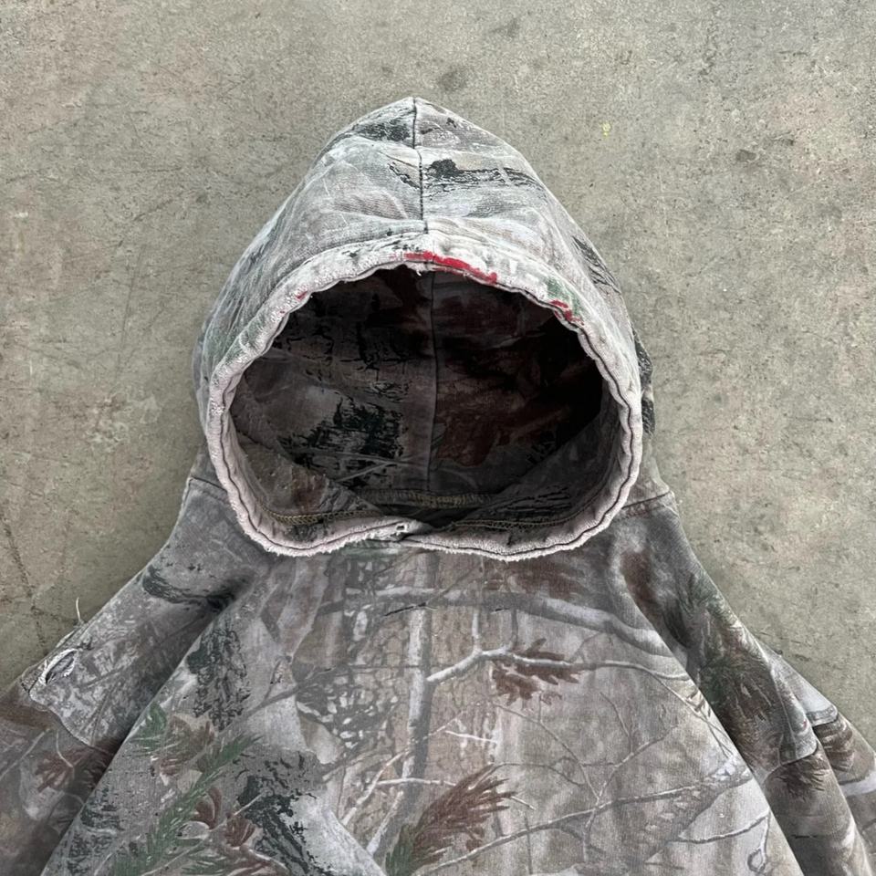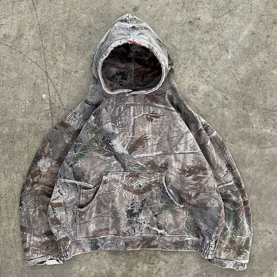 เสื้อฮู้ดดี้พิมพ์ลายต้นไม้ผ้าฝ้าย 100% แบบ OEM สั่งทำพิเศษ ทรงโอเวอร์ไซส์ ลายพราง ล้างสีแบบเอซิด ซิปหน้า ใช้เทคนิคเอนไซม์วอช สำหรับฤดูหนาว
