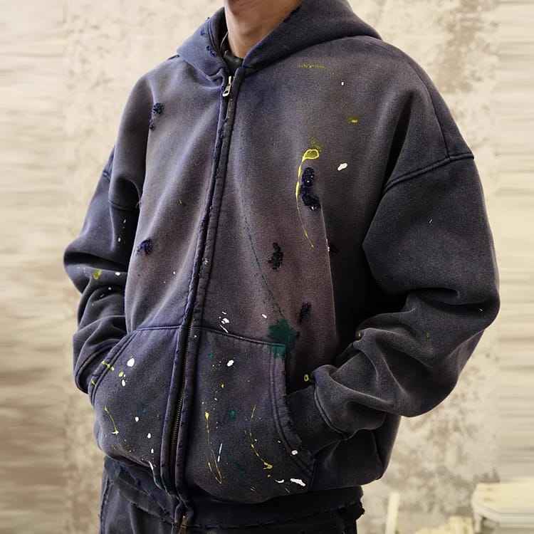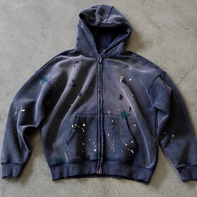 เสื้อฮู้ดซิปสีฟอกวินเทจ