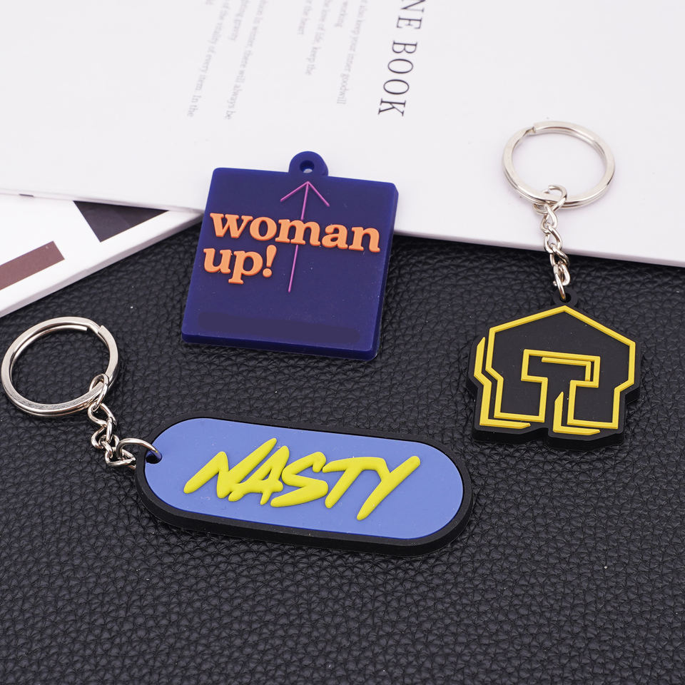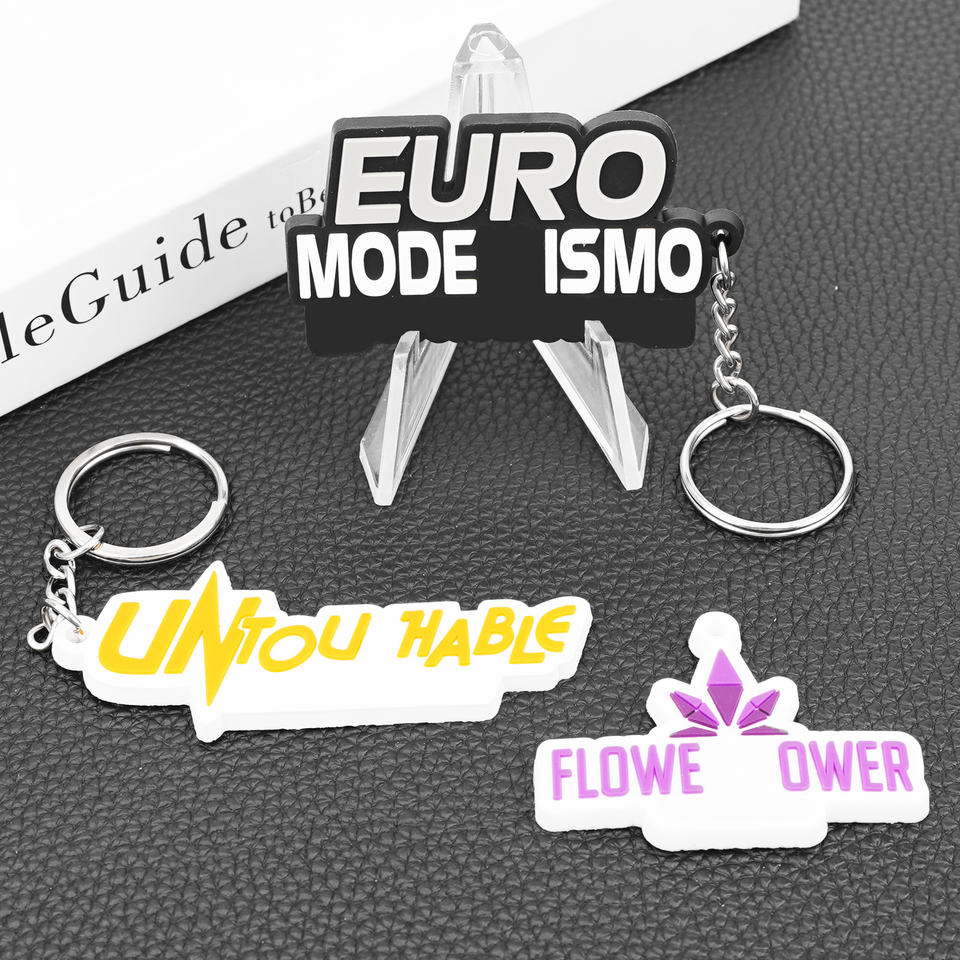 พวงกุญแจโลโก้ยางพีวีซีแบบนิ่มพวงกุญแจซิลิโคนรูปตัวอักษรดีไซน์2D งาน OEM ตามสั่ง