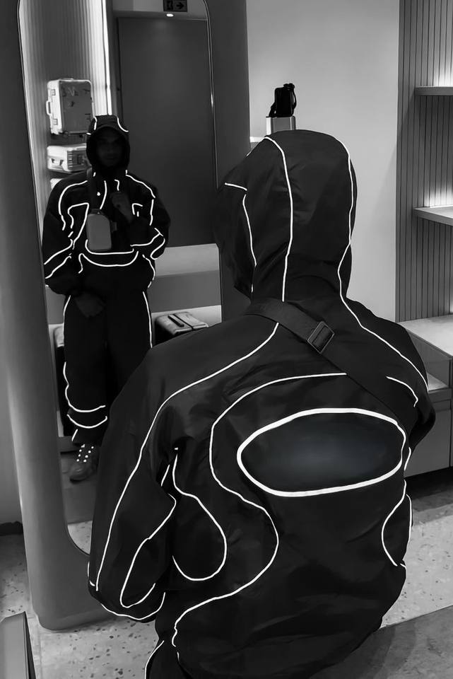 ชุดวอร์มไนลอนแบบมีแถบสะท้อนแสง 3M ผลิตตามสั่ง (OEM) สำหรับผู้ชาย พร้อมแถบขอบสีขาว