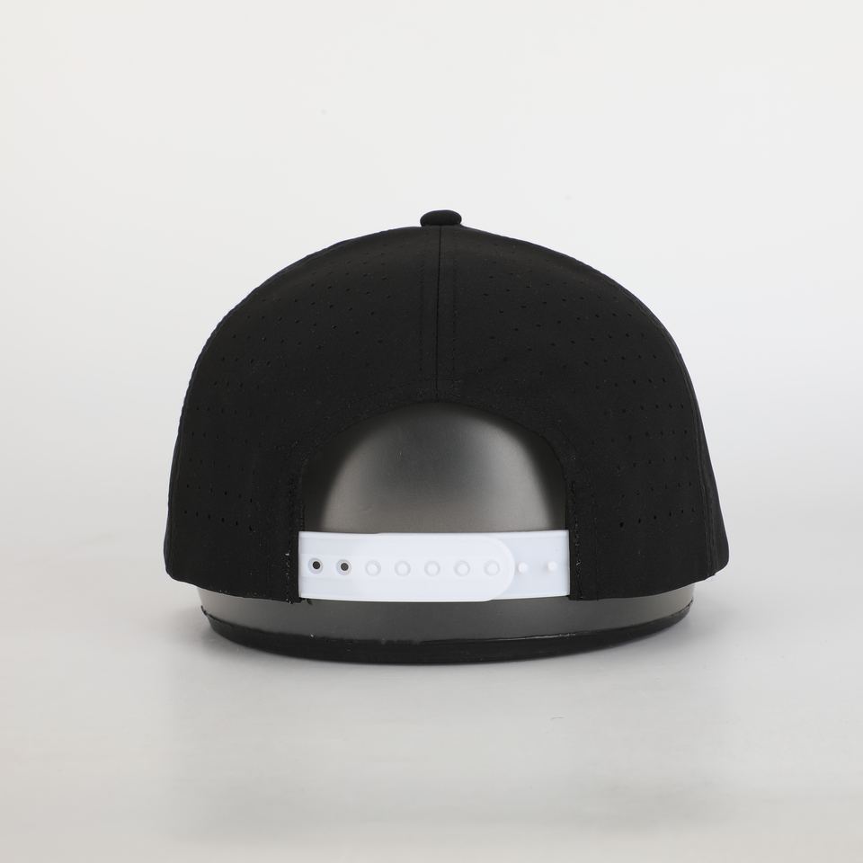 หมวกเบสบอลกอล์ฟกันน้ำ5แผงหมวกโพลีเอสเตอร์สไตล์สตรีทตัดด้วยเลเซอร์โลโก้นูนแบบมีรูโค้งออกแบบได้ตามต้องการ