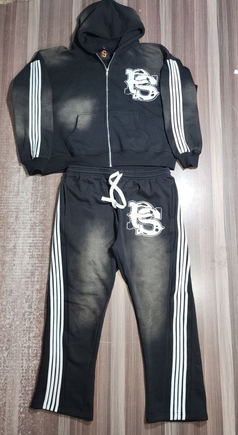 ชุดวอร์มเสื้อแจ็กเก็ตมีฮู้ดและกางเกงคาร์โก้พร้อมฮู้ดผ้าเกล็ดปลาหนาแบบ600GSM ออกแบบได้ตามต้องการ
