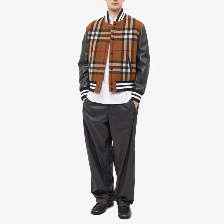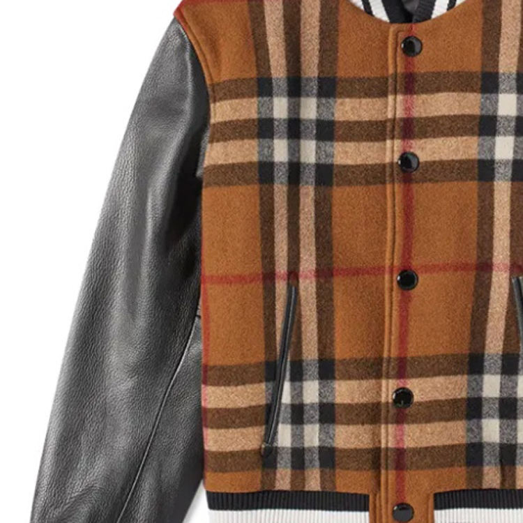 เสื้อแจ็กเก็ตหนังโพลีเอไมด์20% ขน80% สำหรับผู้ชายเสื้อแจ็กเก็ตเบสบอลลายสก็อตตัวอักษรโบราณสำหรับใส่ไปเรียนงาน OEM ตามสั่ง