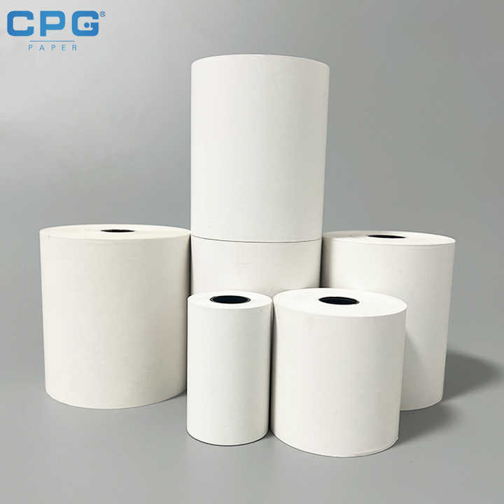 กระดาษม้วนความร้อนแบบกำหนดเอง OEM ขนาด 80x80 มม. 65 แกรม กระดาษใบเสร็จแบบพิมพ์ความร้อนโดยตรงสำหรับเครื่องจำหน่ายสินค้าอัตโนมัติ