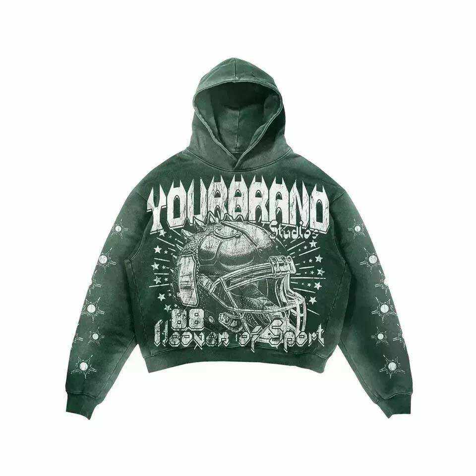 ชุดวอร์มสไตล์วินเทจแบบย้อมสีเอซิดสำหรับฤดูใบไม้ร่วง ผลิตตามสั่ง (OEM) สำหรับผู้ชาย สตรีทแวร์ ดีไซน์ขาดๆ แบบแพทช์เวิร์ค เสื้อฮู้ดและกางเกงขายาว ชุดลำลองสุดเท่