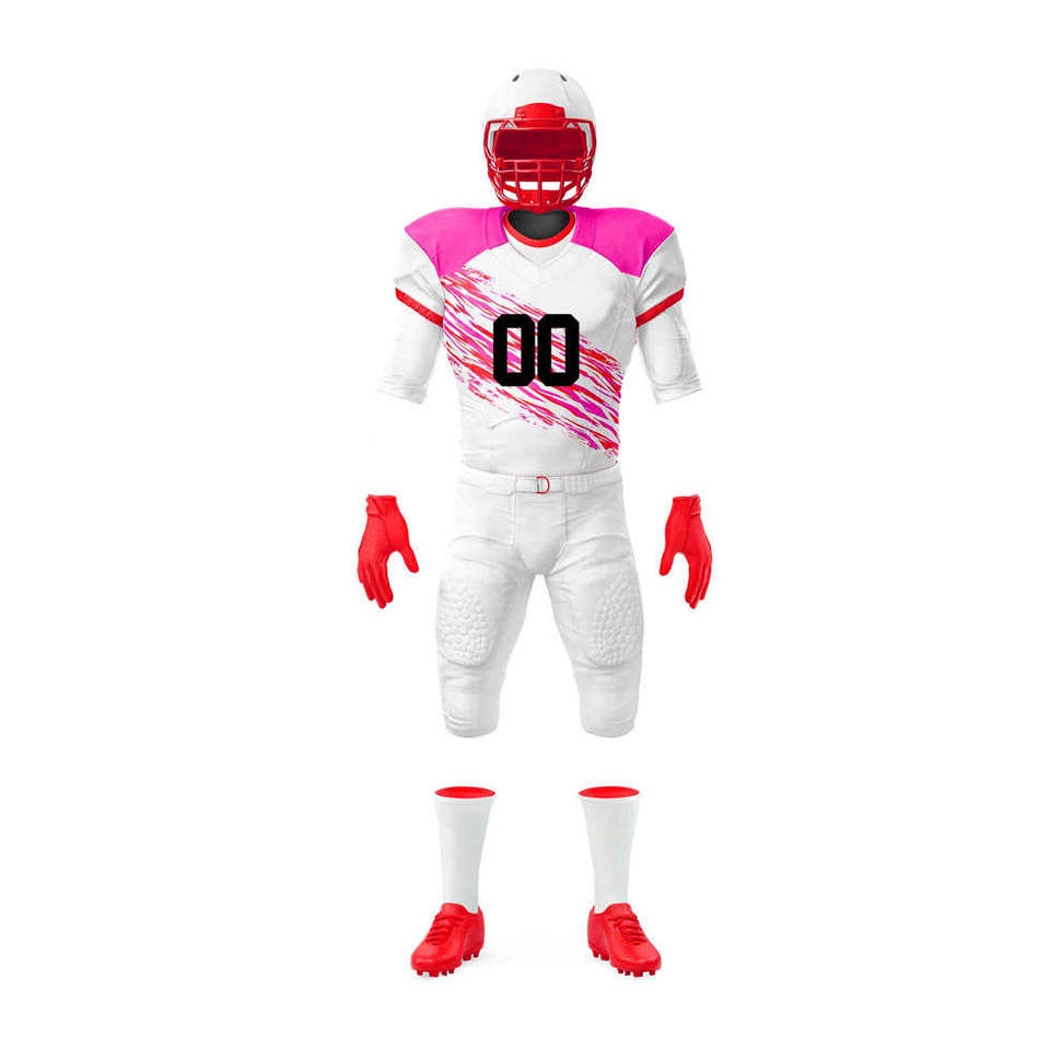 ชุดยูนิฟอร์มอเมริกันฟุตบอลสำหรับผู้ใหญ่แบบ OEM สั่งทำพิเศษ ผ้าทวิลล์แบบซับลิเมชั่น ระบายอากาศได้ดี ผลิตจากโพลีเอสเตอร์ตาข่าย แห้งเร็ว