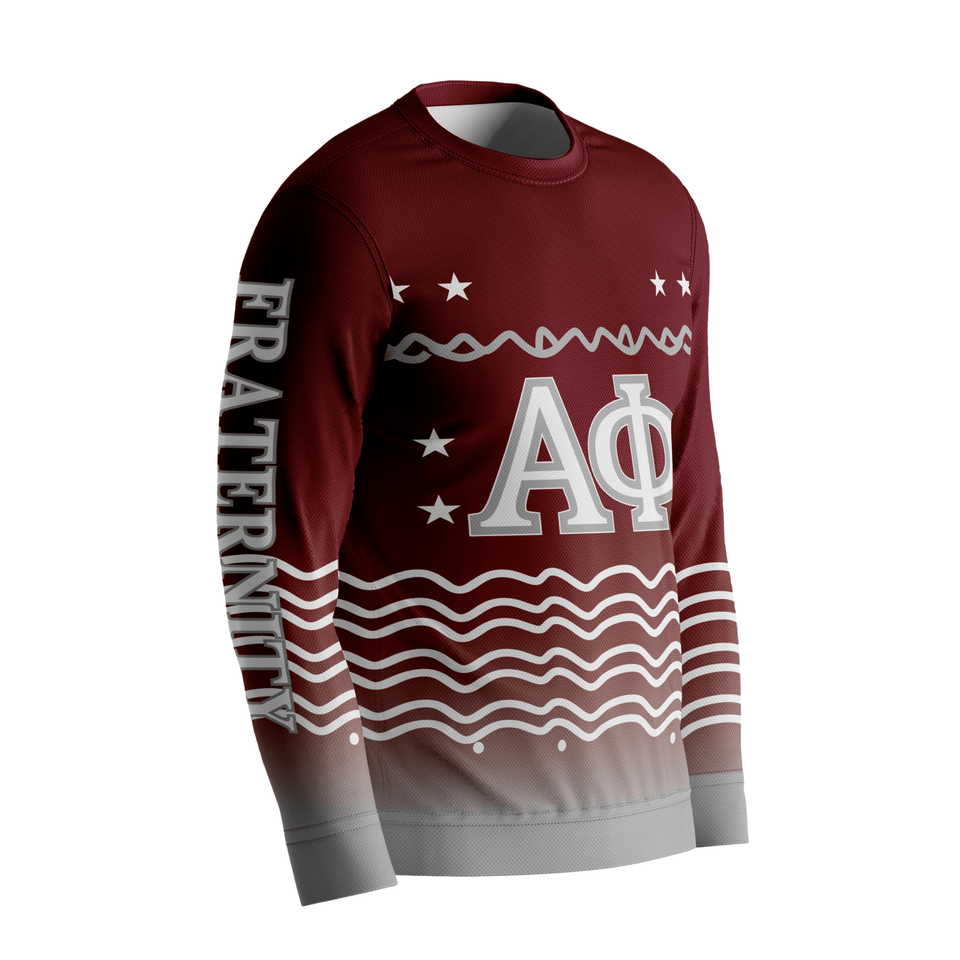 สเวตเตอร์คอกลมลายอัลฟ่าฟีสำหรับผู้ชายเสื้อสเวตเตอร์ถักแบบสวมศีรษะระบายอากาศได้สำหรับฤดูหนาวออกแบบได้ตามต้องการ